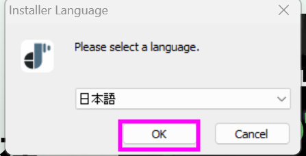 ファイルを開くと言語選択の画面になります。そのまま「OK」を押しましょう。