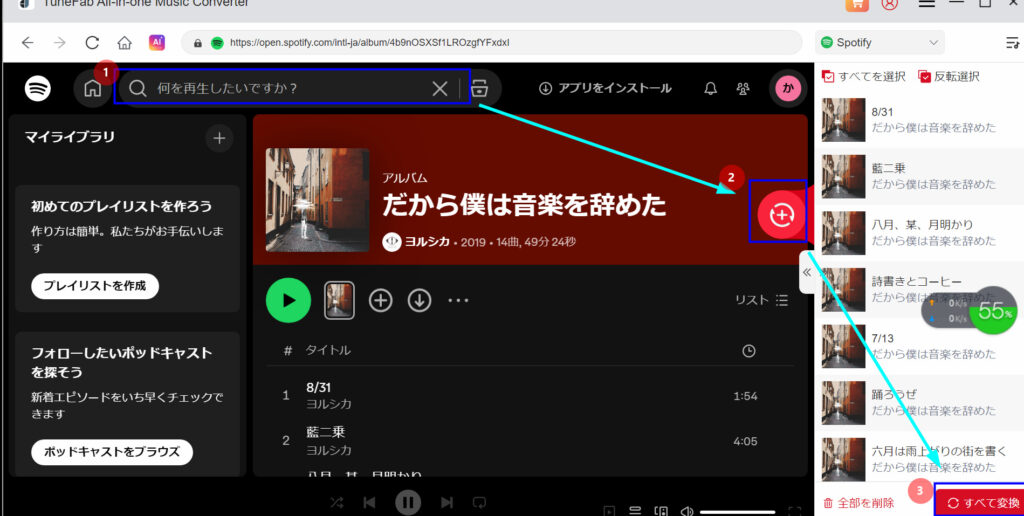 では早速、Spotifyの音楽をダウンロードする方法を紹介します。